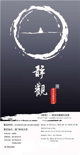 2016年9月13日下午,由澳门基金会资助、澳门科技大学人文艺术学院与天津美术学院联合举办的“静观——景育民作品展”在澳门科技大学隆重开幕。中央政府驻澳门特别行政区有关官员、中华人民共和国外交部驻澳特派官员澳门文化局、澳门基金会、澳门科技大学等相关负责人、当地的学术组织与艺术家以及内地艺术机构及学术界代表、天津美术学院景育民教授出席了此次开幕式。