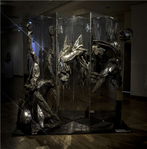 “静观——景育民作品展”作为著名艺术家景育民先生近年来创作理念与艺术实践的全新呈现,是其个人雕塑创作由写意到意象观念形态转型的首展。展览展出了自2012年陆续创作的《达摩•面壁》、《无形之境》、《静观》系列、《镜像屏风》、《竖象》、《横象》、《空象》等一系列自选新作,作品中体现的对于“意象”的阐释呈现了景育民立足中国古典哲学体系与信仰的渊源之上对“空间”这一当代概念的理解,进而对东方式空间意象构筑的实验性探索。